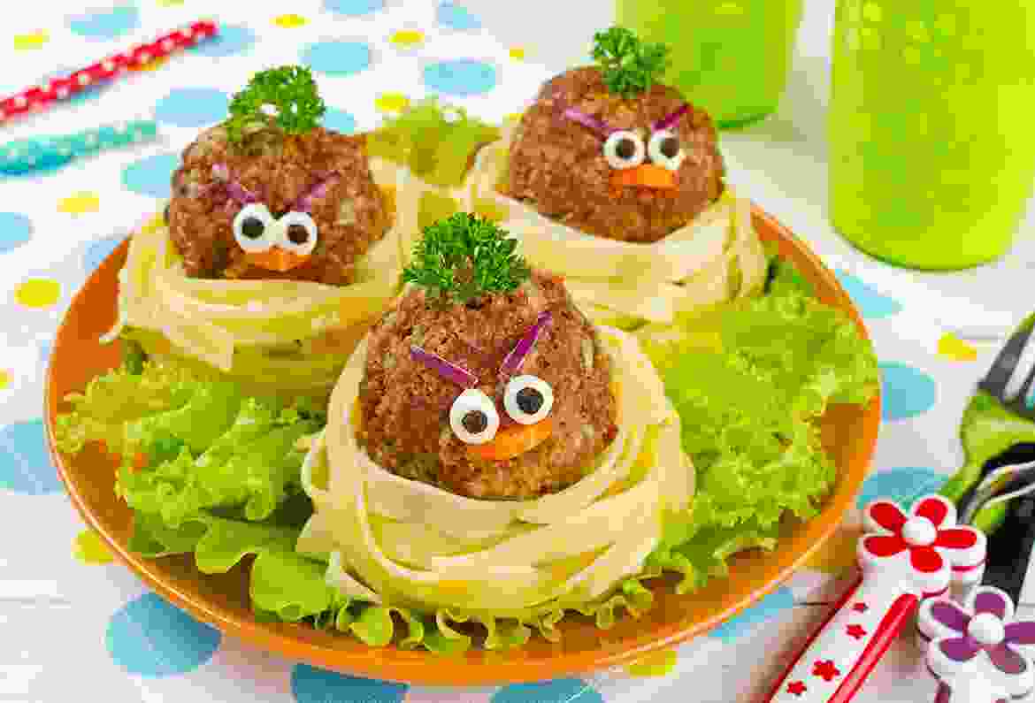 Spaghetti with child face burger